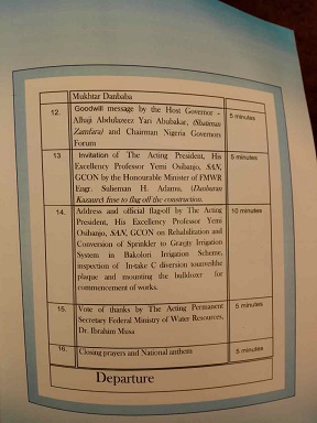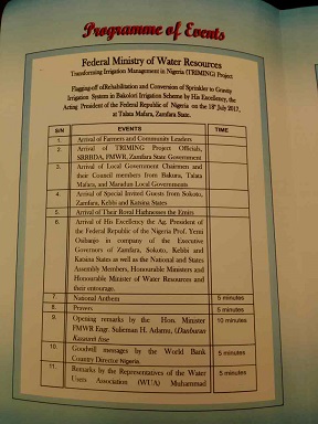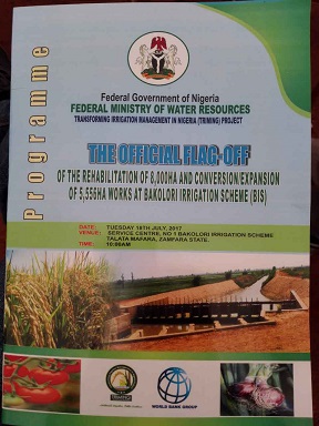2017年7月18日,由尼日利亞聯邦政府向世界銀行貸款的Bakolori灌區項目開工典禮在工程現場隆重舉行。該項目受到了尼日利亞政府的高度重視,多位政要和當地土王酋長受邀參加典禮儀式。按照典禮議程,尼日利亞目前最高掌權人代總統Prof. Yemi Osibanjo出席開工典禮,講話并親自為工程開工剪彩,由于突發的暴雨天氣,代總統未能按照既定的時間到達現場。最后,由尼日利亞聯邦水資源部部長Engr. Suleiman Hussein Adamu主持典禮,并對該項目進行了開工儀式剪彩,世行官員、當地政府、當地酋長、農民代表、咨詢方、承包商等參加了項目開工典禮。