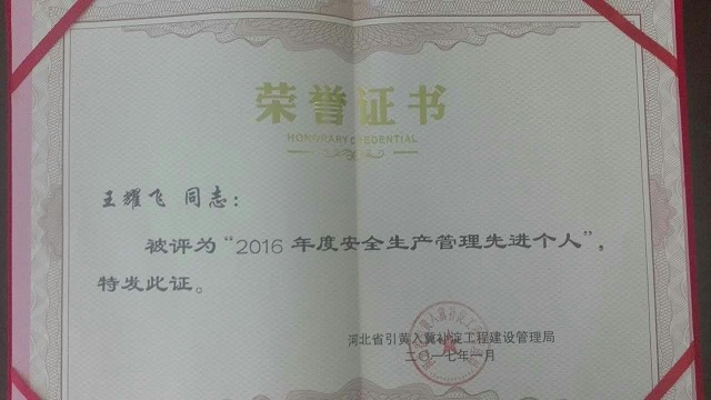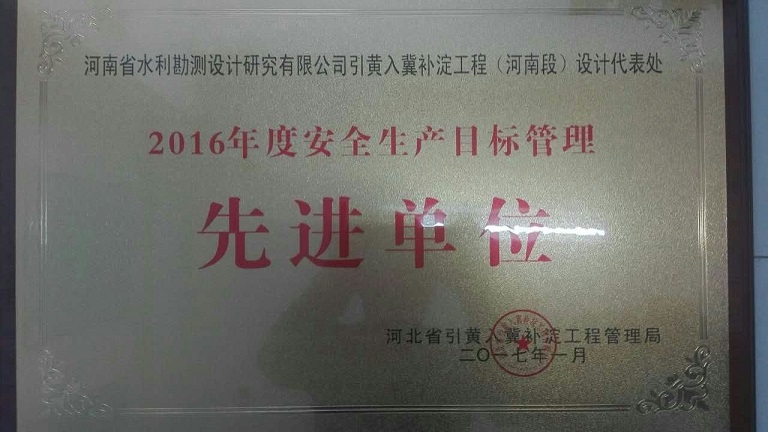 2017年3月1日上午,河北省引黃入冀補(bǔ)淀工程管理局對2016年度安全生產(chǎn)目標(biāo)管理的先進(jìn)單位和個人予以表彰,河南省水利勘測設(shè)計研究有限公司引黃入冀補(bǔ)淀工程(河南段)設(shè)計代表處被評為先進(jìn)單位,設(shè)代處成員王耀飛被評為先進(jìn)個人,設(shè)計二院副院長馮濤,設(shè)代處處長王偉,設(shè)代處成員張征浩、梁榮慧參會。